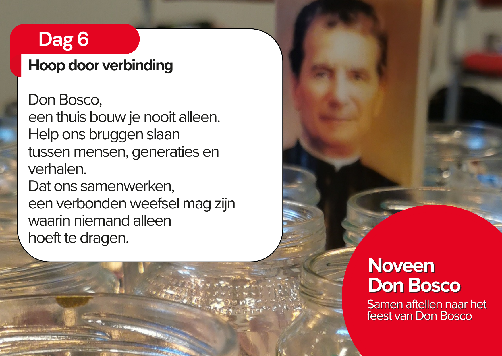 Op donderdag 22 januari start de noveen in de aanloop naar het feest van Don Bosco. Deze negen dagen bieden kansen om elke dag even stil te staan bij wat Don Bosco vandaag kan betekenen in het leven van jongeren. Graag delen we enkele korte noveenimpulsen voor de periode van 22 tot 30 januari, enkele eenvoudige gedachten, geschreven vanuit het jaarthema ‘tHuis van hoop.